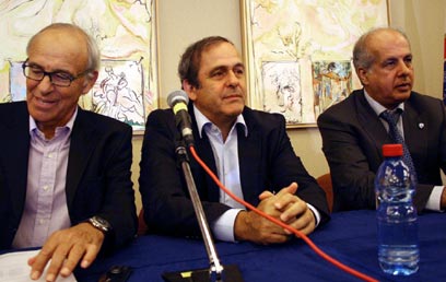 רק בישראל. מישל פלאטיני, נשיא אופ"א, שנעל הערב (ג') את ביקורו בישראל במסיבת עיתונאים לצידו של יו"ר ההתאחדות לכדורגל, אבי לוזון, לא חשב שכך ייראה האירוע האחרון בו הוא שותף לפני חזרתו לצרפת.