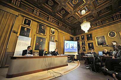 רגע ההכרזה בשטוקהולם. "מכון ויצמן קופח בתחום הנובל" (צילום: AFP)