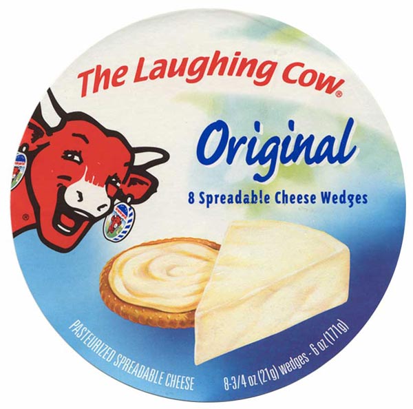 איש הצמיגים היה אדם, שלא כמו הפרה הצוחקת הפרה הצוחקת של לה ואש קירי, הגבינה הראשונה שמותגה בצרפת. היא אדמונית, מתפקעת מצחוק, ועונדת עגילים בצלמן של קופסאות הגבינה שנקראית על שמה. אבל בראשית דרכה ב-1921, היא לא ניחנה אף לא באחד מהמאפיינים הללו. הם נוספו לה ב-1924 והפסים שמאחוריה נוספו רק ב-1955.