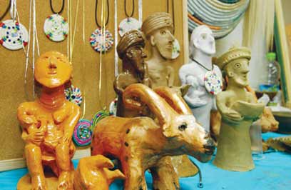 עבודות אמנות של רקמה ססגונית וחימר בשיטות מסורתיות ב"רקמה"