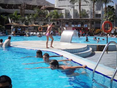 מפעילים את הנופשים בבריכה לתנועות ה-א-ג-דו (צילום: יוסי דוס-סנטוס)