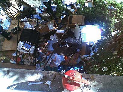 "החדר של ג' פונה לחלוטין. שתי חדרים (הטעות במקור – ק"נ) אחרים פונו חלקית. החפצים נזרקו למטה, שתי חמשבים מנופצים, ונופץ טלפון שהיה במקום".