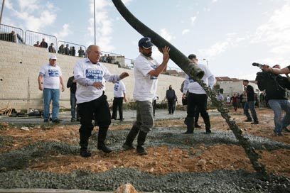 מקימים יסודות באפרת (צילום: גיל יוחנן)