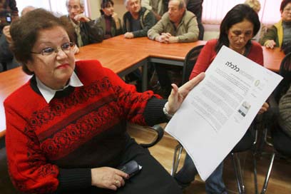 עובדת מציגה ידיעה על כינוס הנכסים שחולקה לעובדים (צילום: חגי אהרון)
