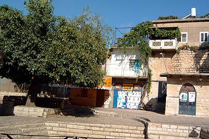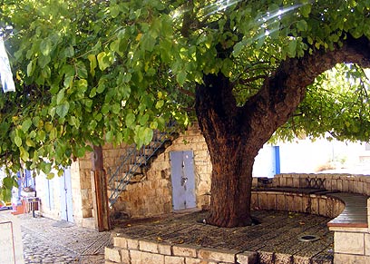עץ התות בכיכר המעיין בפקיעין. המעיין היה לבו של הכפר עד שנות ה-70