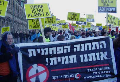 שלט נגד הקמת התחנה הפחמית בהפגנה הגדולה בקופנהגן בשבת (צילום: גיל יעקב)
