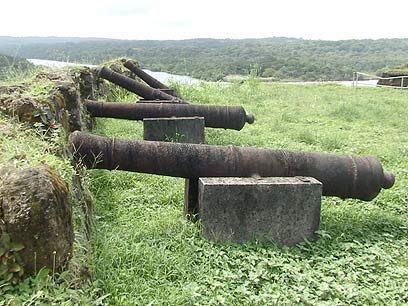 מצודת סן לורנצו. עשרות תותחים ספרדיים שוכבים על הקרקע