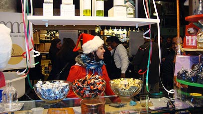 מוכרת תופינים בשוק המקורה. מקום טוב להתחבא בו בזמן גשם