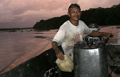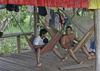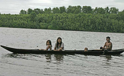 כמו המקומיים, גם אנחנו שטנו בסירה העשויה מגזע עץ, ומכיוון שהיו בה כמה חורים, עבד הקפיטן שלנו במשך כל השיט עם סיר קטן ביד ושפך את המים שהצטברו החוצה. לאחר הביקור בשבט האינדיאני הוביל אותנו גזע העץ המחורר שלנו לראות מושבה של אלפי תוכים ירוקים החוזרים למנוחת לילה על העצים - מחזה קולני מרהיב ביותר. בין ענפי העצים דילגו להם קופים חומים.