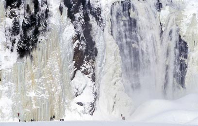 ענף ספורט חורף אקסטרימי נוסף הוא טיפוס על מפלים קפואים. בתמונה רואים את מפלי מונטמורסי (Montmorency Falls Park) קפואים