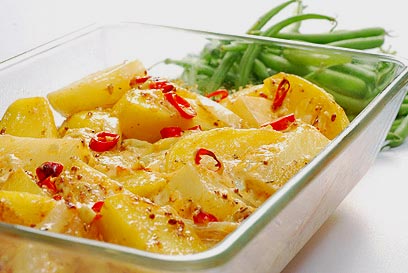תפוחי אדמה במיונז, צילי ,חרדל והרבה בצל