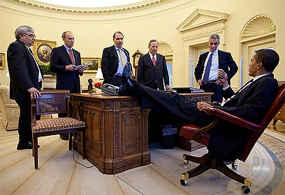 עמנואל סופג את האש. פגישה בחדר הסגלגל (צילום: פיט סאוזה, הבית הלבן)