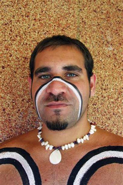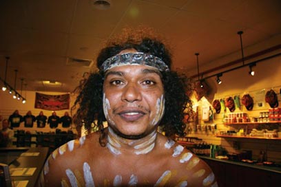 הוא מדגים הטלת בומרנג במקצועיות רבה ומצייר ציור על בומרנג, כל זאת תוך כדי סיפור ההיסטוריה, המיתוסים והאגדות של בני עמו, כגון חשיבות הנחש בהתפתחותו של הגבר ועל חשיבות הקנגורו והוולאבי בהתפתחות האישה.