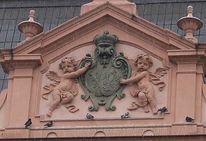 2 מלאכים אוחזים בסמל של ביתה של משפחת אצולה בכיכר החרות