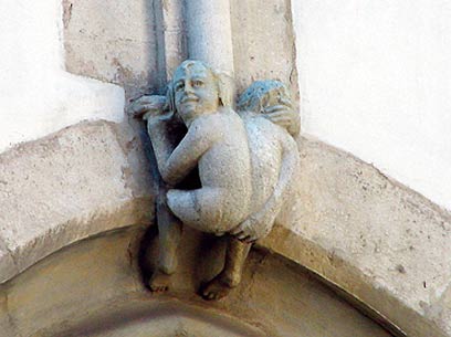 בחרתי לספר על כמה אתרים שנהניתי לבקר בהם שוב ושוב, בגלל הסיפור, היופי והייחוד. כנסיית סנט ג'יימס (St. James' Church) היא עוד אחת מהכנסיות הרבות בעיר, אבל... האם בכל כנסייה נראה את אחוריו החשופים של גבר מחייך? תמהתני. מעל קשת גותית צמודה אל הקיר דמות של איש קטן שאחוריו העירומים מופנים כלפי העיר וכלפי הקתדרלה הגדולה. מה עושה הגבר העירום על קיר הכנסייה?!