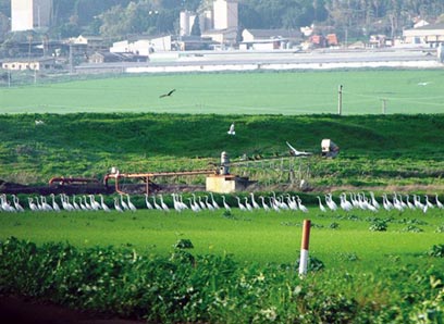 כשנסענו שם בשנה שעברה ערכה אוגדת ציפורים תרגיל הטעיה לצפרים מתחילים. מאות בעלי כנף לבנים עלו וירדו בגלים, כגוש אחד. בתחילה חשבנו שמדובר בזרזירים; אך מאין לנו זרזירים לבנים? התברר שהיו אלה פשוט שחפים שבתום סצנות אחדות של תרגילי מעוף חנו על פני המים באחת הבריכות.