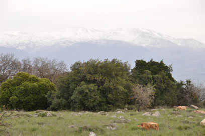 מבט אל האופק חושף את רכסי הגולן. הר החרמון בולט בלובנו מעל כולם