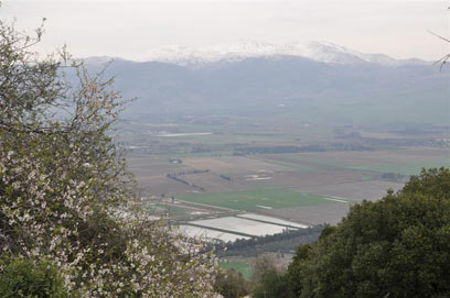 דרך הנוף הוותיקה מגיעה בסופה לכפר גלעדי. מבט על הפריחה בעמק החולה
