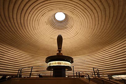 האדריכלים שתכננו את היכל הספר עיצבו אותו בצורה ייחודית: קיר אבן שחור העומד מול הכיפה הלבנה (בצורת מכסה של כד). שני המבנים מסמלים את בני האור ובני החושך, המוזכרים במגילת כת מדבר יהודה שנמצאה בקומראן.