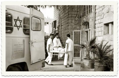 12. ד"ר אברהם צפרוני נוסע לחו"ל, והצוות מלווה אותו ביציאתו. רכב מ"הדסה" בירושלים נשלח לאסוף אותו
