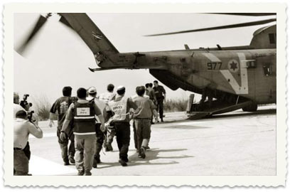 16. פינוי במסוק לבית החולים, לאחר הפיגוע הקשה בצומת מירון, אוגוסט 2002