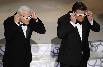 בולדווין ומרטין מנסים לראות את קמרון (צילום: AP)