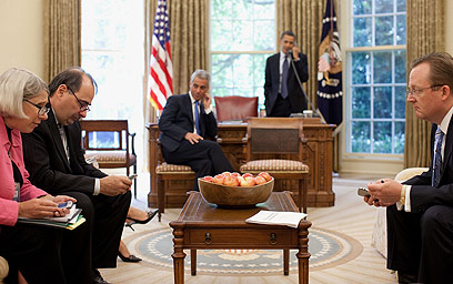 תככים בחדר הסגלגל. גיבס, אובמה, עמנואל ואקסלרוד (צילום: הבית הלבן)