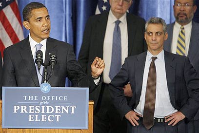יד-ימינו של הנשיא. עמנואל ואובמה, נובמבר 2008 (צילום: AP)