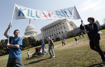בית הנבחרים החל לדון בחוק הבריאות לקראת ההצבעה הסופית, שתכריע הלילה אם מיליוני אמריקנים יקבלו ביטוח וכיצד יירשם הנשיא ברק אובמה בספרי ההיסטוריה. פעיל ימין התפרץ לדיון בקונגרס וצעק: "להרוג את החוק! העם לא רוצה אותו!"