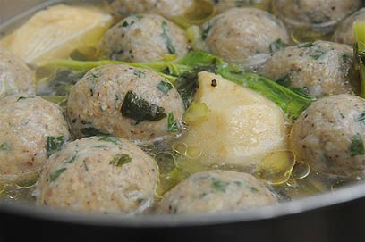 קניידלך העוף של רפי כהן מתבשלים במרק (צילום: ירון ברנר)