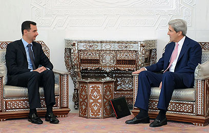 ג'ון קרי ואסד בסוריה. האמריקנים לא ממש האמינו להכחשות (צילום: AFP)