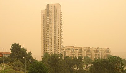 מתחם הולילנד תחת מעטה אובך כבד, אתמול (צילום: הילה, ירושלים)