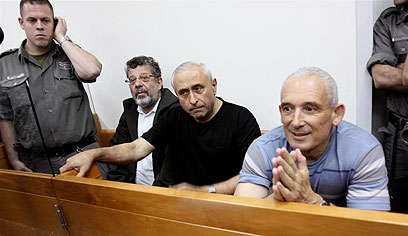 שלושת החשודים, היום בבית המשפט בראשון לציון (צילום: אבי מועלם)