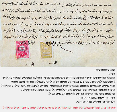 2. תעודת רכישת הקרקע בעמק יזרעאל עם תרגום לעברית של המסמך העותומאני