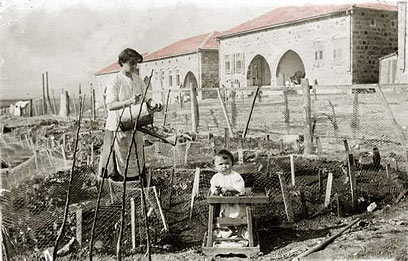 14. רחל סלוצקי עם בתה, שולמית הבת הראשונה שנולדה בקואופרציה