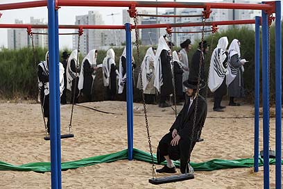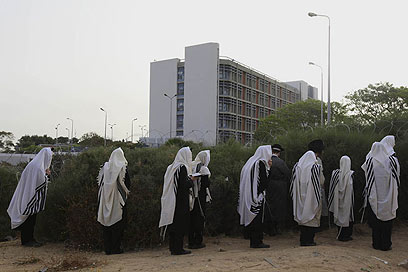 תפילות מול אתר הבנייה המיועד, הבוקר (צילום: צפריר אביוב)