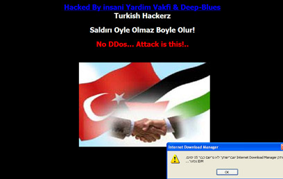 האקרים טורקיים הגיבו על הדרמה בלב ים והשתלטות צה"ל על המשט לעזה, פרצו לאתר אודי ישראל ושתלו בו תמונה של דגלי פלסטין וטורקיה