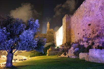 חומות ירושלים ומגדל דוד מוארים במגוון צבעים (צילום: רומן קרימן)