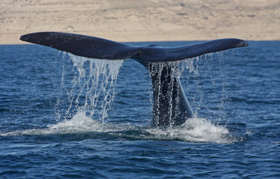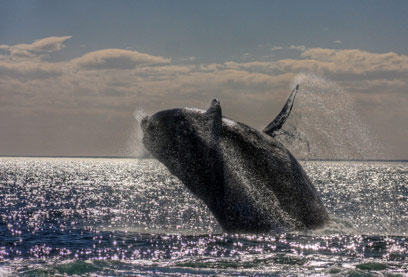 לוויתן בלן דרומי מגיח מהמים ונעלם בהם