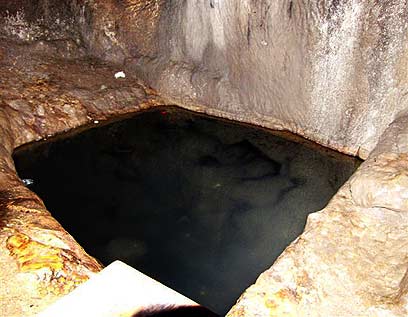 שביל העץ והשביל המוסדר במערה מוליכים אותנו לקרבת עמוד האבן, ושם נמצאת גם עלייה קצרה עד לבריכה קטנה שבה נקווים מים המטפטפים מתקרת המערה; אולי אלה שהשתייה מהם מסייעת להבאת תאומים...