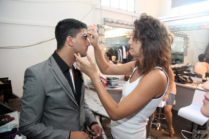 במהלך הצילומים ביקש ממנו הסטייליסט שלא יעשה תנועות חדות מדי, כדי שלא ימצא עצמו שוב עם מכנסיים קרועים, סטייל התקרית ב"רוקדים עם כוכבים". דמיינו אותו עם שיער ארוך וזורק נייד על עוזר אישי, וקיבלתם דוגמן על בנעליים של סופרמודל.