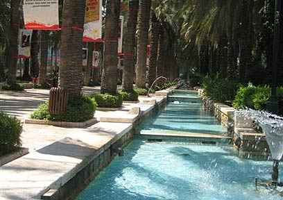 דקלים קשישים ומזרקות מרעננות. גן העיר