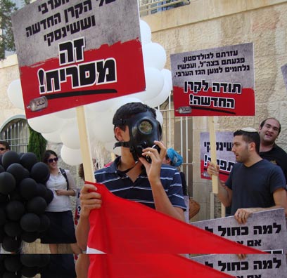 חברי הפורום הפגינו אתמול (ראו תמונה לעיל) מול ביתו של יו"ר הוועדה, איתן שישנסקי, בירושלים, מצויידים במסיכות גז, דגלי מצרים ושלטים בנוסח: "פגעתם בצה"ל ועכשיו אתם נלחמים למען הגז הערבי", ו"ועדת ששנסקי זה מסריח".