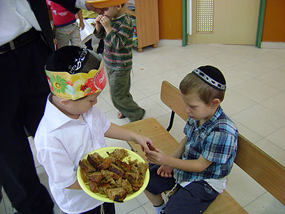 מוישי הולצברג, שניצל מהפיגוע בבית-חב"ד במומבאי, בנם של השלוחים הרב גבריאל ורעייתו רבקה הולצברג ז"ל - התחיל היום (ראשון) ללמוד ב"חדר" חב"ד במגדל-העמק. מוישי הגיע ליום הראשון ללימודים במקום, מלווה בסבו הרב שמעון רוזנברג ובמטפלת סנדרה שהצילה אותו מהתופת לפני כשנה וחצי. מוישי הגיע ל'חיידר' מכוסה בטלית ועם חיוך מתוק. באתר חב"ד און-ליין - COL, פרסמו את התמונות.