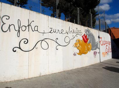 איור הניבתנים הפך לסמל וכשלפני כמה שנים מחק אותו מישהו באישון ליל, קמה מחאה שכונתית. ועד ההורים של בית הספר המקומי החייה לבסוף את האיור, אך הכתובת שונתה ל-"מקד את חייך, בית הספר של שכונת סורברן מגניב". הבאסקית כבר אינה זקוקה לכתובות מהסוג ההוא על הקיר.