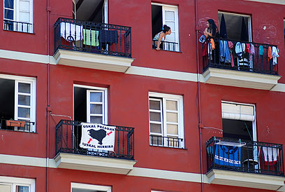 שיחת שכנות. על המרפסת משמאל: כרזה למען שחרור האסירים הבאסקים