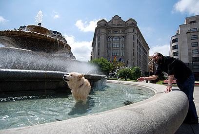 אנשים וכלבים אמיתיים בכיכרות. הטמפרטורות גבוהות מהרגיל לעונה