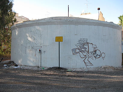 לאחר מגדל המים מתחלף שביל העפר ברחוב סלול שנקרא בעבר "הצברים", אך שמו הוחלף ל"תל אביב-יפו" בתחילת שנת 2010, לרגל יובל המאה של העיר העברית הראשונה. מיקומו של הרחוב נבחר בשל ההקשר ההיסטורי של המקום. מימין לנו הבחנו בבתי המגורים הגבוהים של "מתחם 200" החדש בהוד השרון ולאחריהם בבית הקברות הישן של מגדיאל. משמאל ניצבות שתי בריכות מים עגולות נוספות המסמנות את שיאה של הגבעה (4), ומכאן גולש הרחוב בשיפוע לא תלול מזרחה, ונוף פנורמי של השרון הדרום-מזרחי, עד ראש העין בדרום, ושל מורדות השומרון, ליווה אותנו בדקות הבאות. חלפנו על פני המבנה הענקי של בית האבות "גיל פז", שהזכיר לי יותר מכל את מנזר השתקנים בלטרון, והגענו אל מגרשי החניה של תחנת הרכבת כפר סבא – נורדאו.