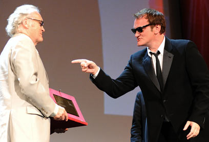 טרנטינו והבמאי הפולני ייז'י סקולומובסקי. מה המניע? (צילום: AFP)
