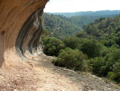 עם הדרך הזאת מגיעים לאחר כ-300 מ' לחניון של קק"ל. במקום יש שולחנות פיקניק. כאן מסתעף מן הדרך סימון שחור, חמקמק ביותר, המפנה שמאלה לשביל היורד לערוץ נחל קצר. הולכים בשביל השחור עד האתר של מחצבות קדומים (6), השוכן בצד עיקול חריף בכביש העולה לבית אורן. באוכף הטופוגרפי השטוח (שקע באזור הררי) שבצד עיקול הכביש יש כמה מיתקנים עתיקים: מחצבת אבנים הבנויה מסידרת מדרגות במצוק גיר, שרידי בית בד, מערת קבורה וגליל אבן גדול מחורץ לאורכו. אלו שרידיו של היישוב הביזנטי הקדום שעל הגבעה שמדרום מערב - גבעת יערות הכרמל.
